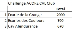 Il ne reste plus que 2 endurances (Bouzy et Les Hayes) avant la fin des Challenges ACORE CVL, je vous demande donc de bien vérifier vos points car je suis facilement étourdie, et il serait dommage que ceux qui ont des prétentions se retrouvent mal classés à cause d’erreurs. Je vous remercie d’avance.
